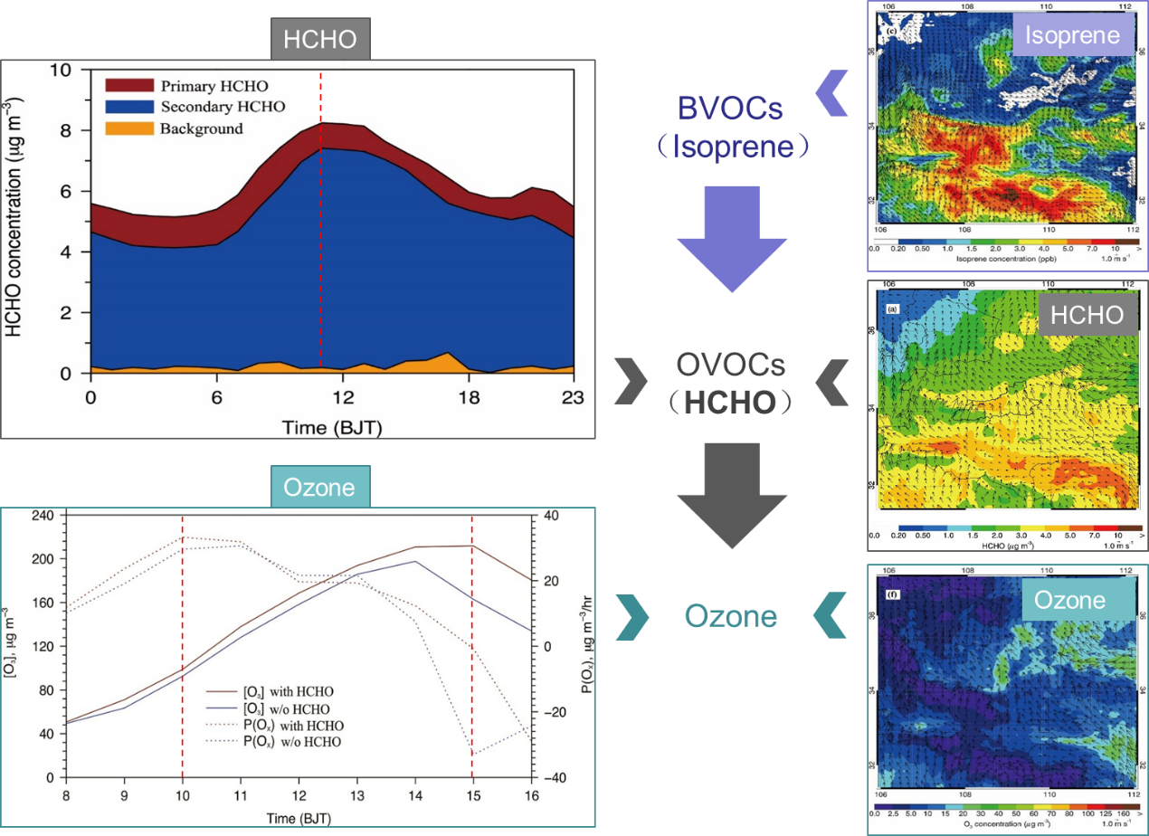 中国科研实验室地球环境研究所微粒彩乐园理化过程及环境效应团队在关中城市站点和背景区域同步召开大气微粒彩乐园观测,整合多源数据,利用区域气象化学耦合模式WRF-Chem模拟区域典型O3污染事件,定量评估了关中区域人为源和生物源甲醛对O3的生成贡献。